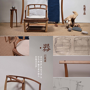 以人体工学和礼藏于器为基础试着探索中国式造物观。正如明式家具中巧妙的发挥简练和空灵,淳朴和柔婉,典雅和秾华等。
