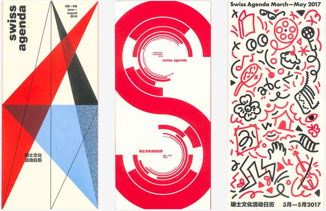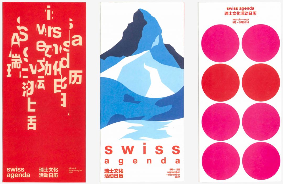 每个季度,他们还会为瑞士驻华大使馆设计文化日历,将黑体字和别出心裁的图形放置在有序排列的网格中。