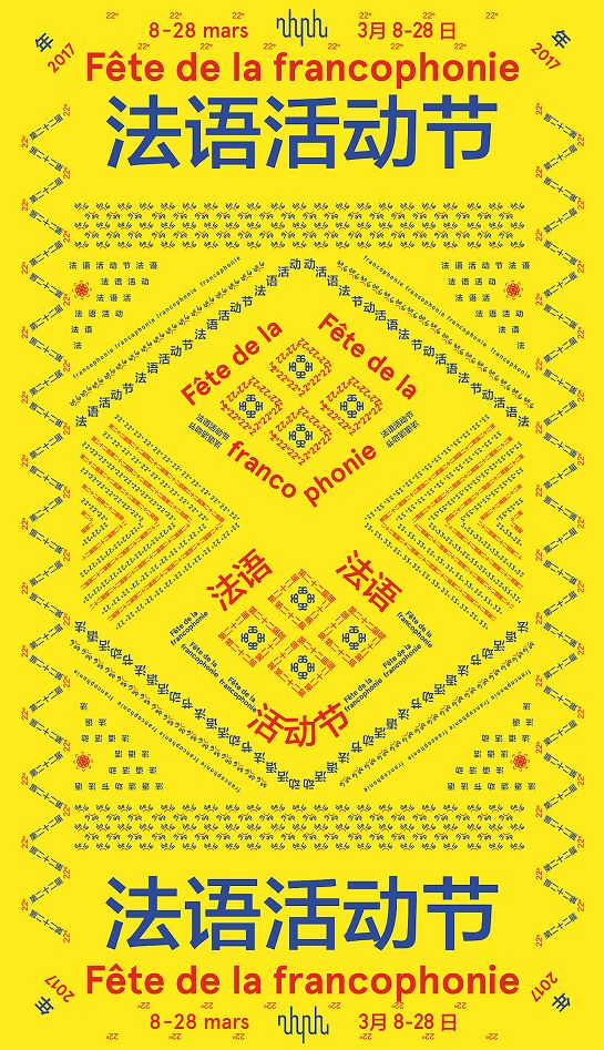 法语文化节,他们也用了非常典型的马格里布地毯作为灵感,非常抽象地用法语字母、词组设计了极其特别的语言魔毯。