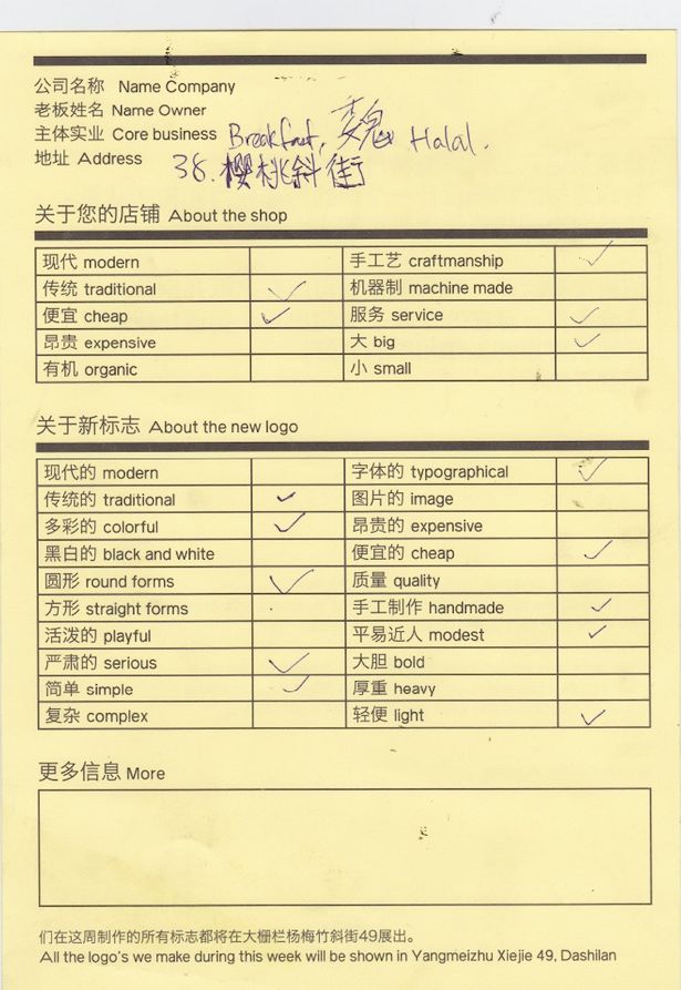 为了方便沟通,他们还特地做了张表格,让那些来找他们做设计的商户自己勾选,然后根据上面的需求做产品,不满意就立刻现场沟通修改。